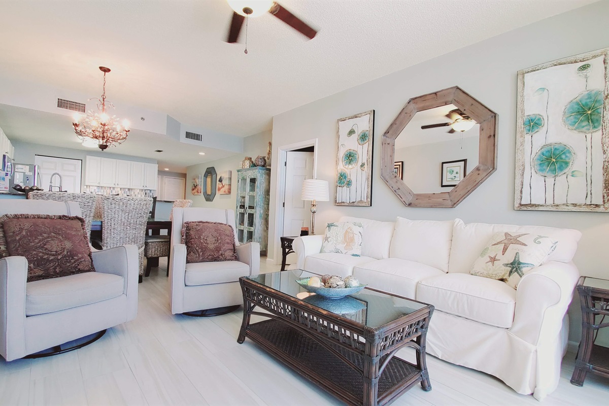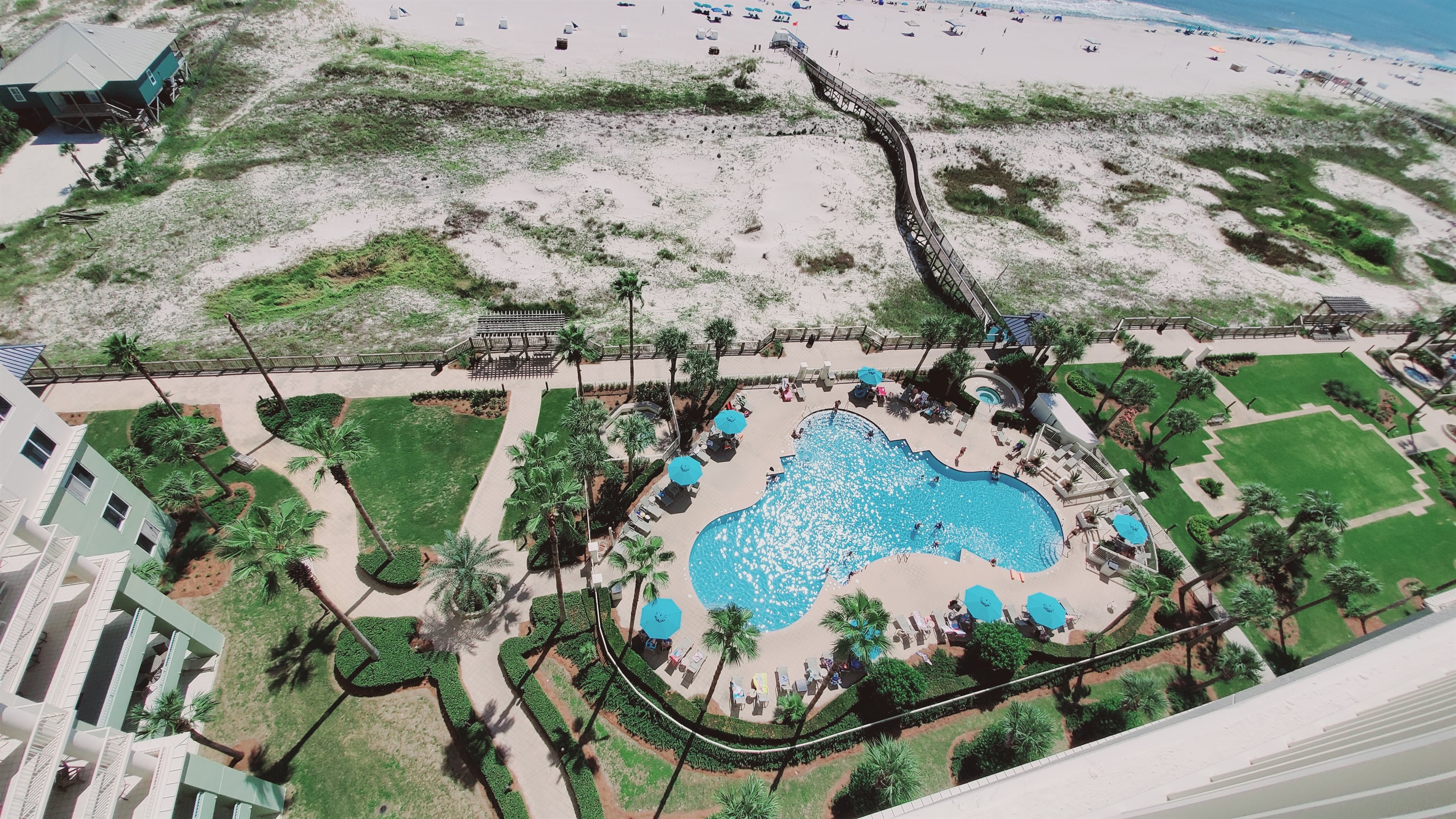 Without any additional fees, you will have access the beautiful pool, hot tub, wading pool, and restrooms at the foot of the tower, plus access to the boardwalks, playground, basketball courts, charcoal grills and tram services. Additionally, you may patron the salon and fine dining restaurant and bar, with gulf view, at the clubhouse, and you may patron the sports bar & grill with an arcade, beach & apparel shop, coffee and ice cream shops near the entrance of the resort.