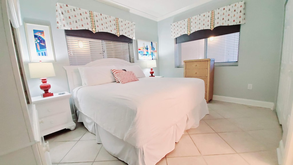 This condo is perfect for couples, both beds are Kings and both have its own private adjoining bath. The bamboo accented master King bedding will remind you of a tropical paradise and the vivid red stripe guest King bedding reminds you to have fun in the luxury of it all.
