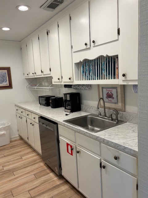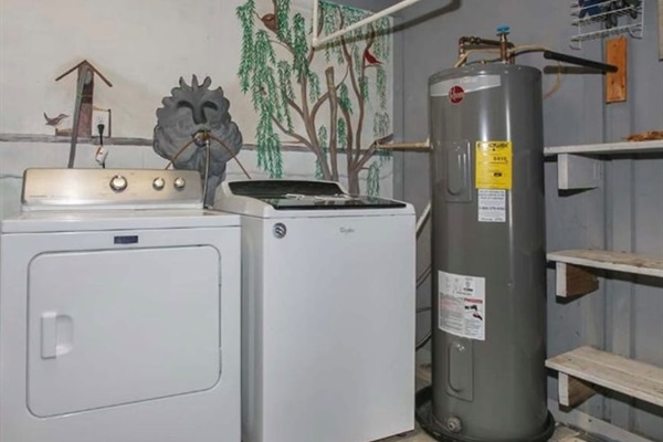 The kitchen has full size appliances, including a dishwasher, washing machine and a dryer. The cabinets are stocked with everything you will need for most meals. Bring all disposable products, food, spices and coffee filters for a standard coffee maker. You will have access to a charcoal grill and a picnic table! Bring steaks, charcoal and lighter!