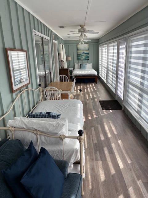 Bath linen is provided. Bring beach towels. The beds are made with fresh white linen plus a set for the sofa sleepers. Bedding arrangement is King Primary, Queen Guest, Queen Guest with twin daybed and a twin trundle, Twin Twin Guest. The living room is equipped with 2 sleeper sofas. One has a queen sleeper mattress, and the other has a full sleeper mattress. Limit is 12 people. A "one day supply" of amenities is supplied and is intended to get you through the first night so you can shop. All areas are on ground level. Bathrooms have tub/shower combo.