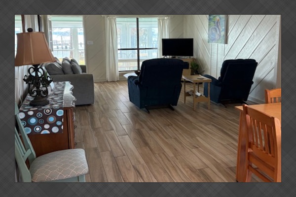 Living room has two sofa sleepers & 2 recliners. |
