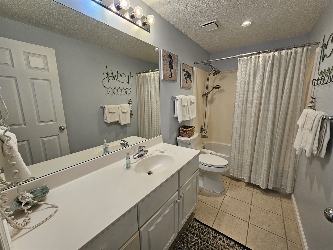 The condo sleeps 6 in beds and 2 on the sleeper sofa. The bedding arrangement is King in master, King in first guest room, Queen in the second guest room, sofa sleeper. The beds are made with white linen and a set is provided for the sofa. Bath linen is provided along with a "one day" supply of toiletries and tissue paper. Please bring beach towels, make up removal wipes, toilet tissue and toiletries.