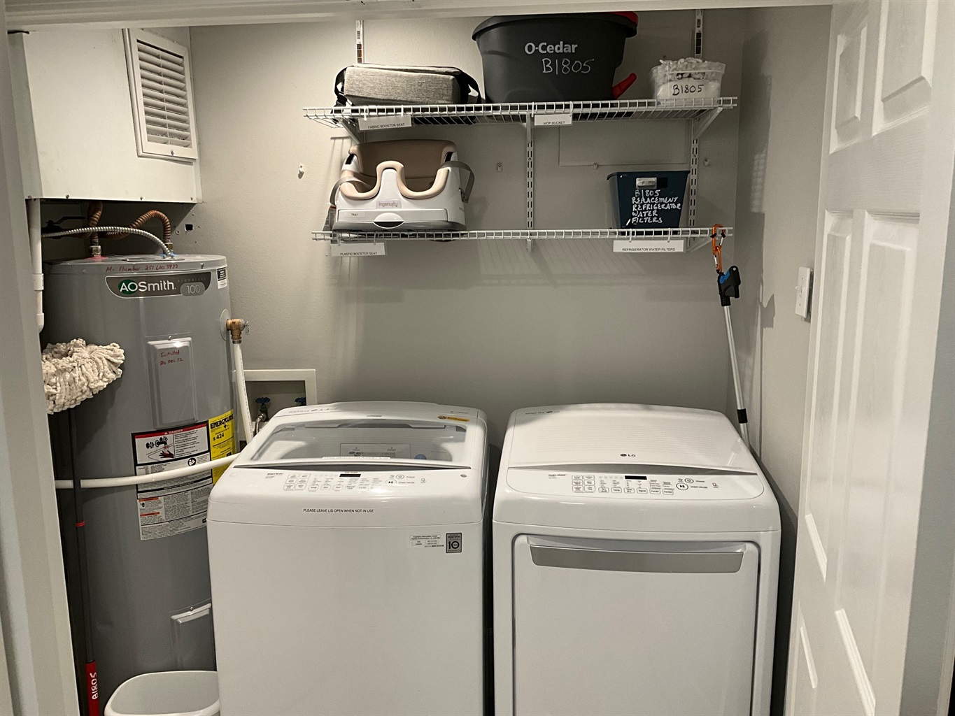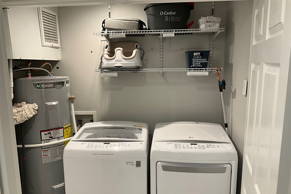 As an added "Bonus", the owner supplies salt & pepper shakers, coffee filters, garbage bags, dishwashing liquid and pods, jet dry, clothes washing pods, dryer sheets, We provide a "One Day Supply" of toiletries/detergents/disposables for the kitchen & bathrooms.