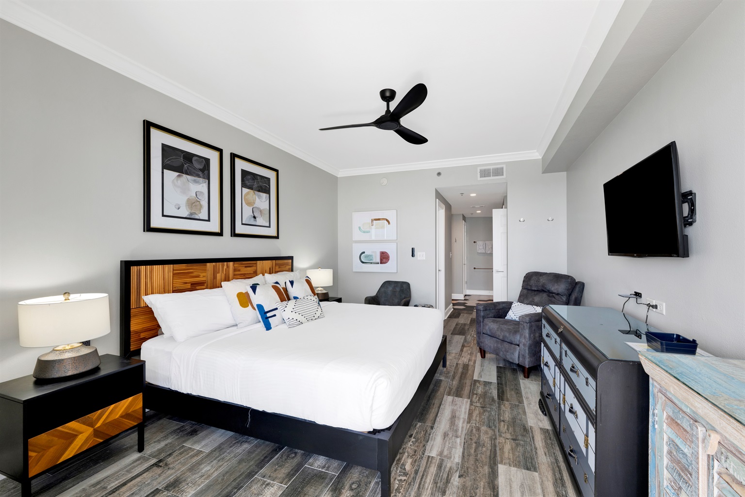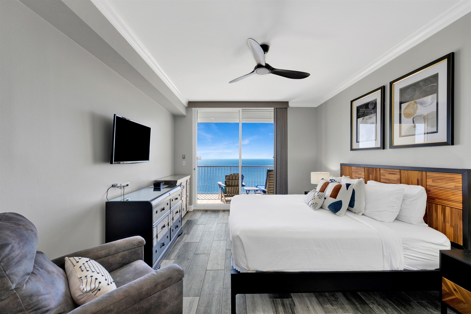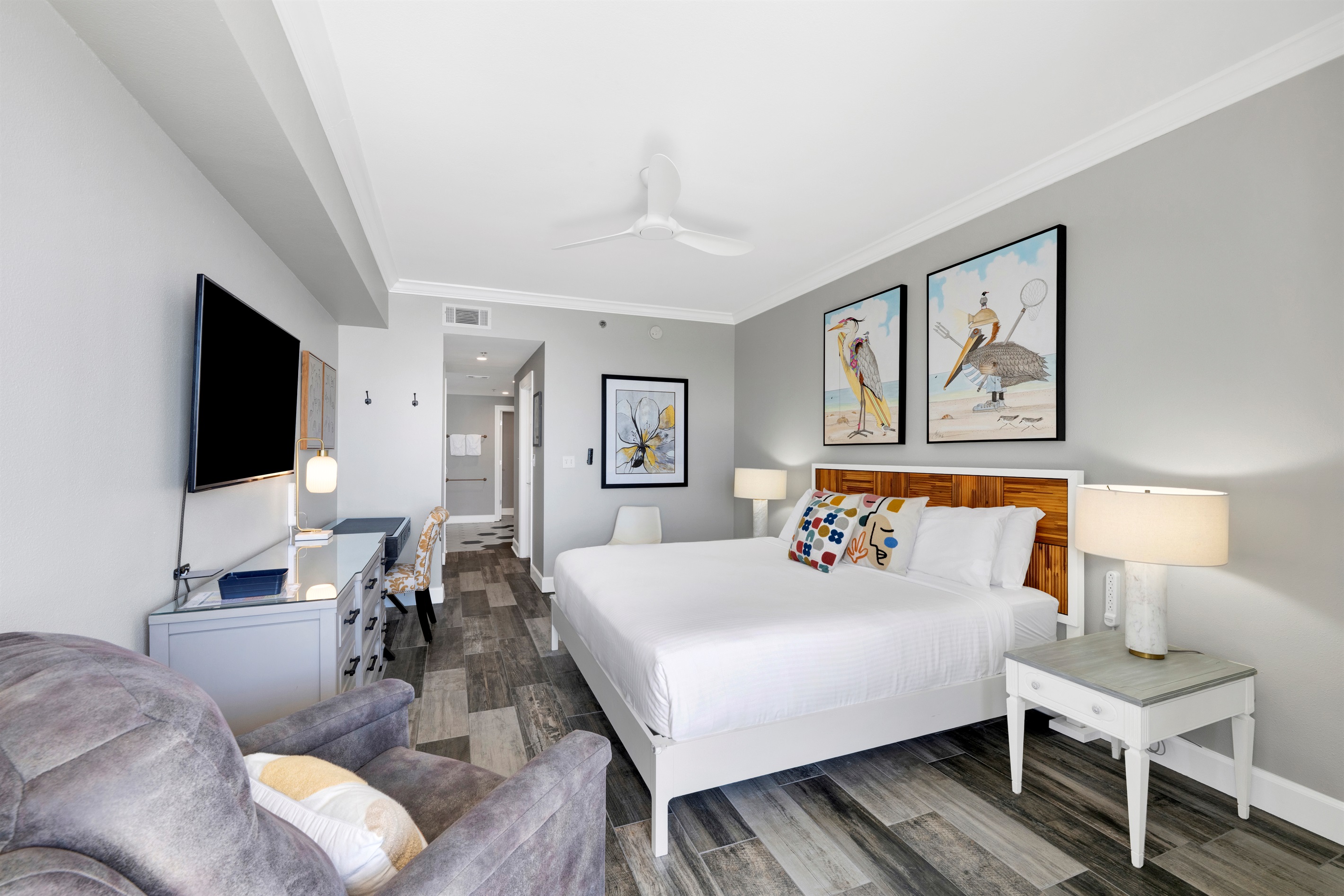 • Four king suites with full bathrooms, one with a desk, 2 have direct balcony access and an ocean-view recliner, perfect for a power nap