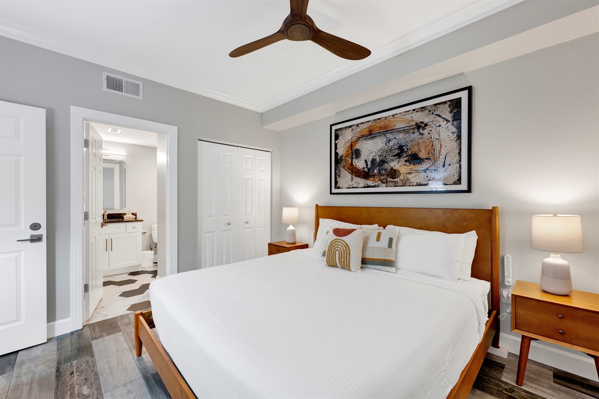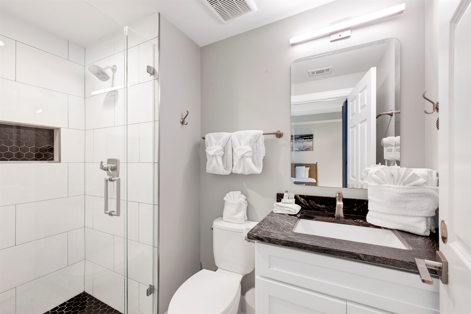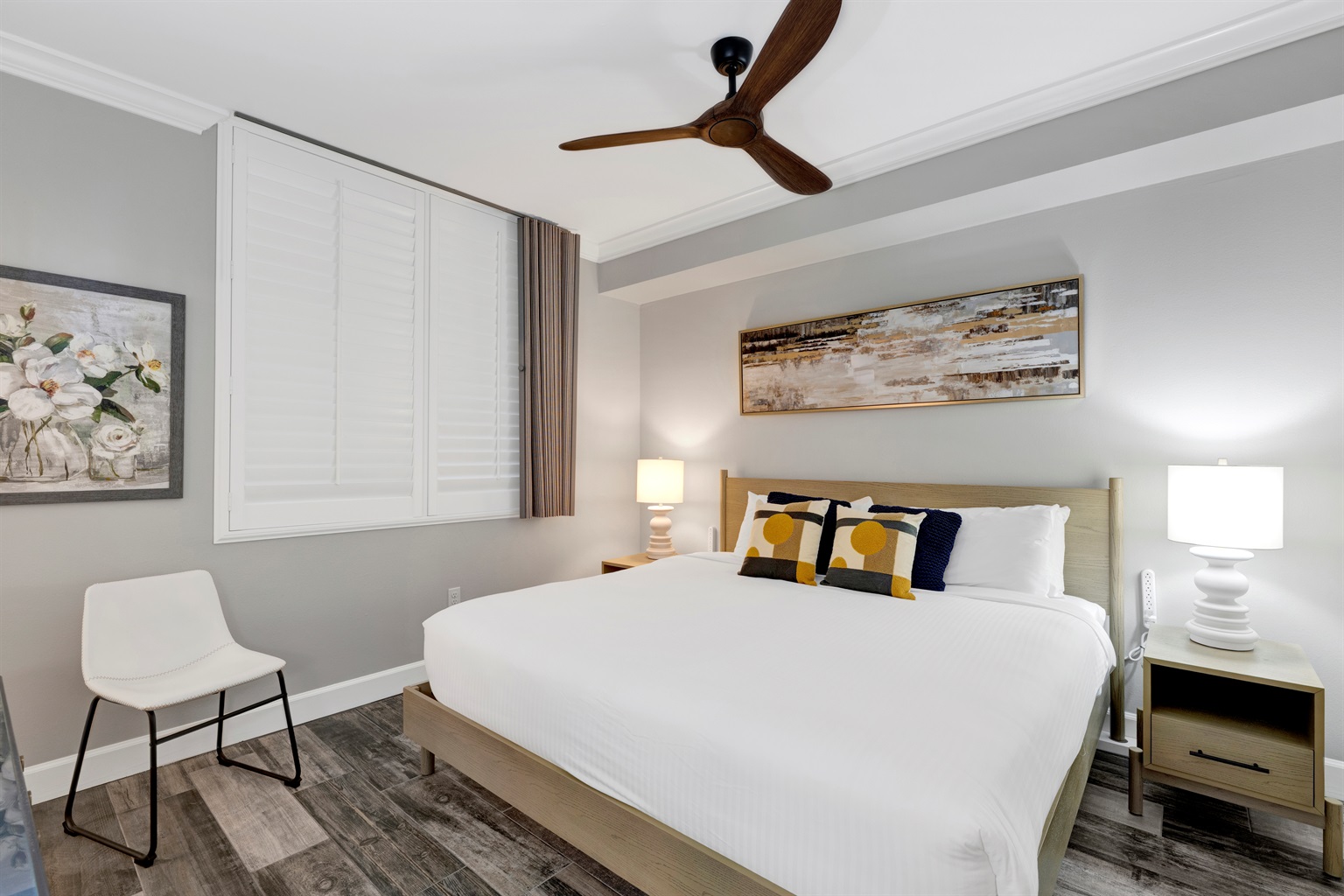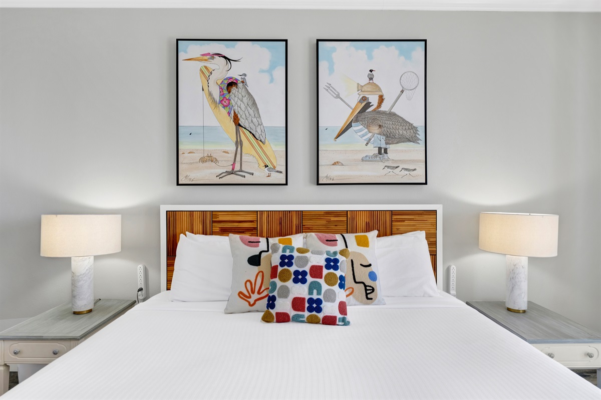 • Four king suites with full bathrooms, one with a desk, 2 have direct balcony access and an ocean-view recliner, perfect for a power nap