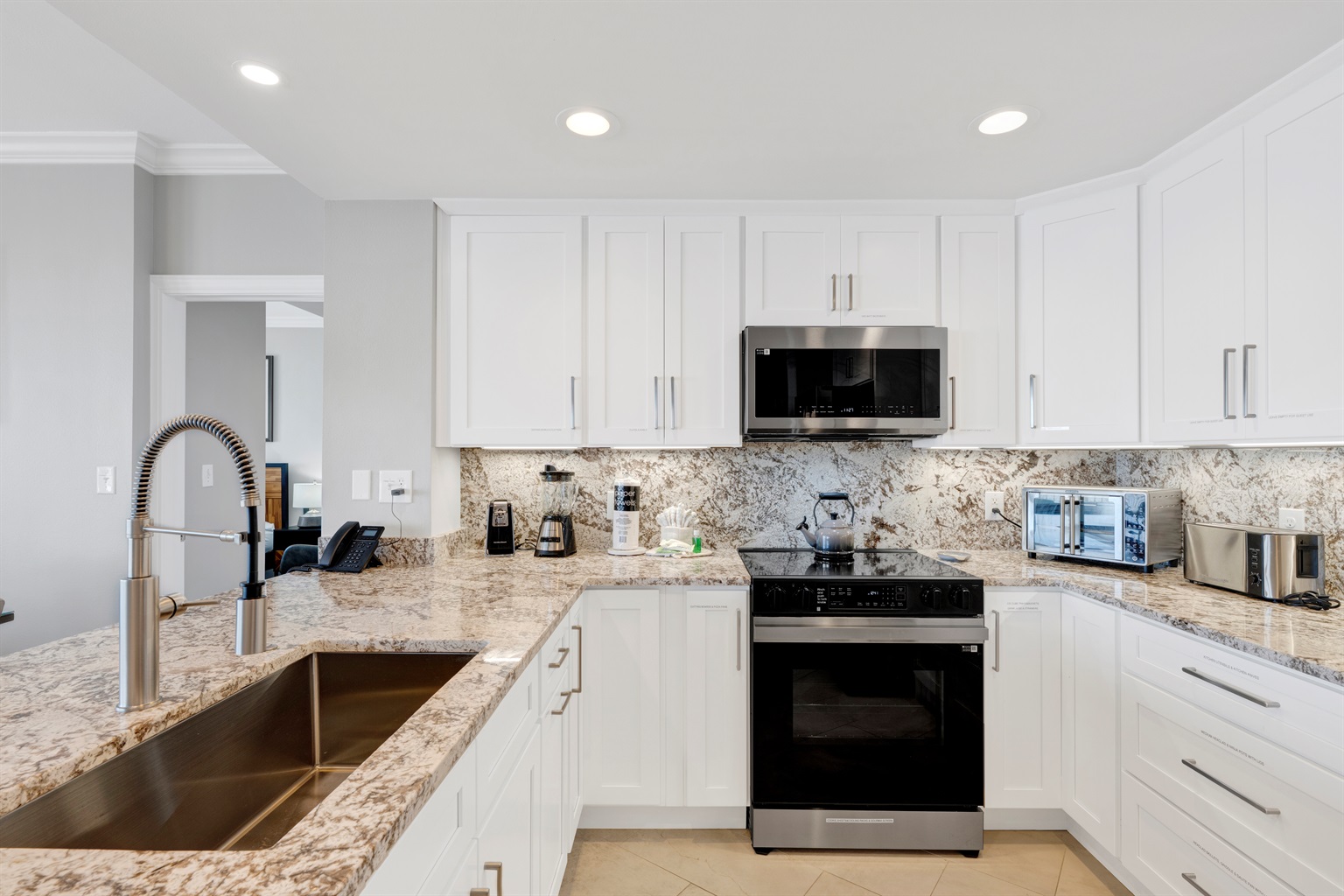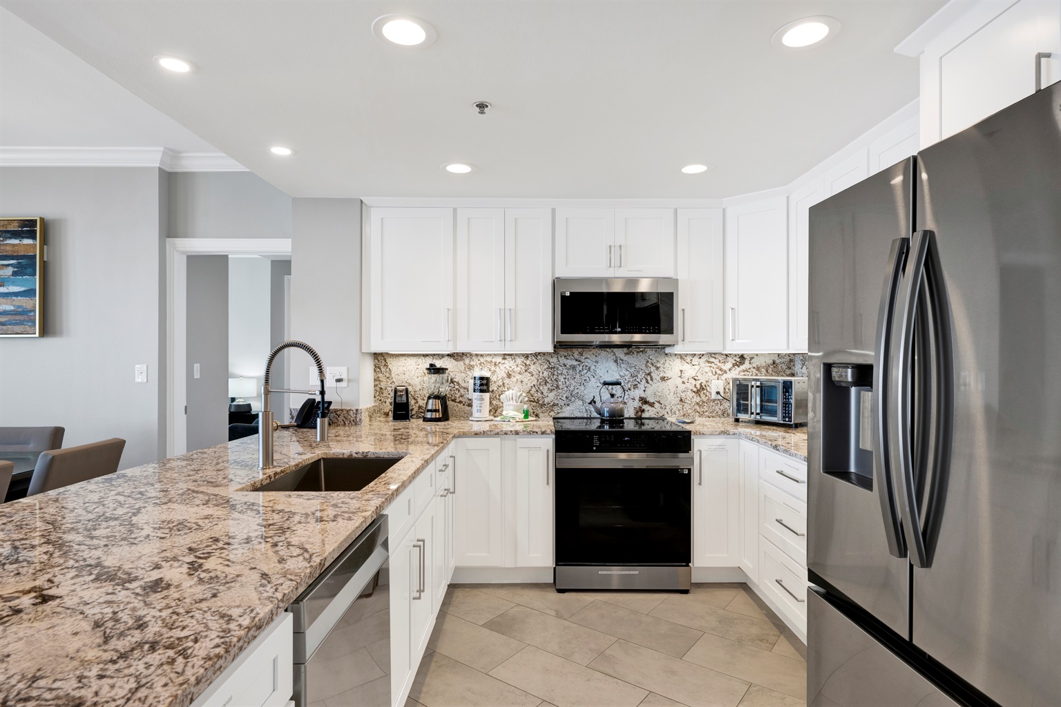 Without any additional charges, you will have access to the pool and hot tub at the foot of the tower, three boardwalks to the beach, a playground, basketball courts, and charcoal grills.