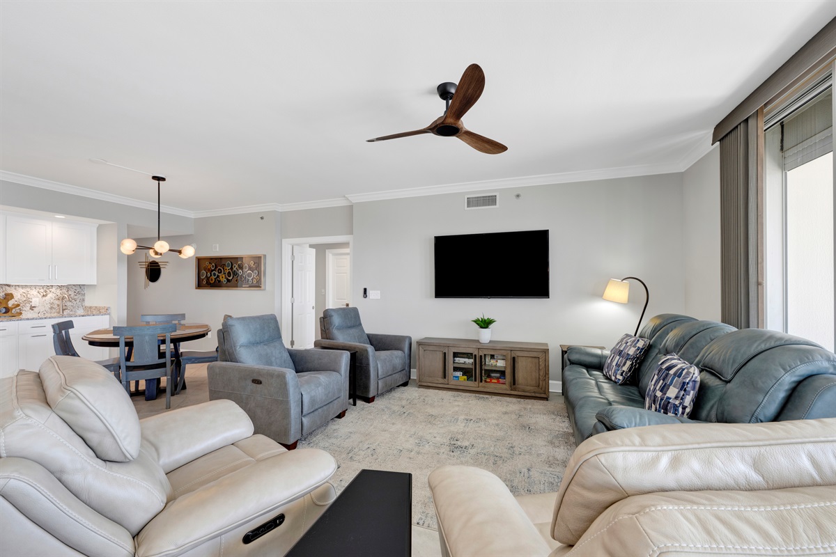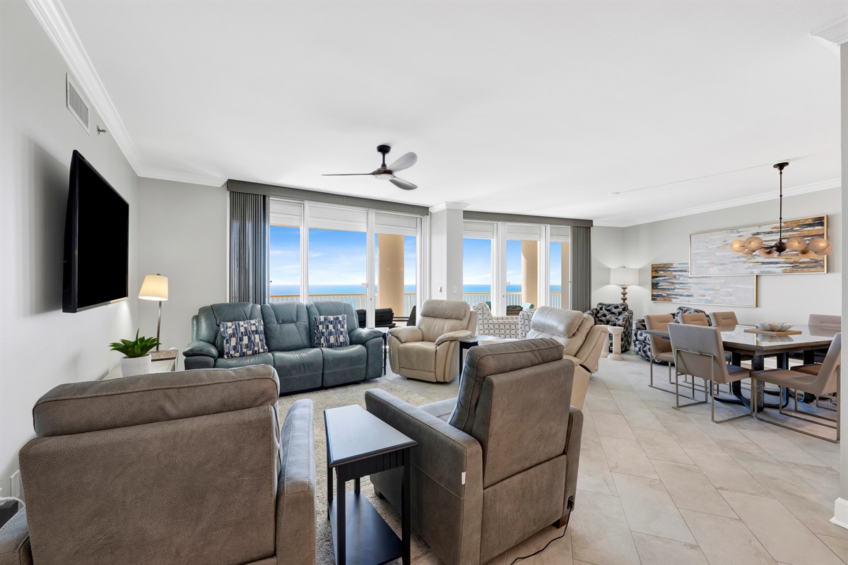 Welcome to Bristol 1805 where memories are made from sunup to head’s down. It sleeps 11 in real beds (no sleeper sofa). Outside, take in the sweeping view from the 16-seat, 54-foot balcony spanning the center of the Bristol building. Inside, enjoy swivel-glide chairs and eight reclining seats when it’s time for the A/C, and relax knowing all rooms were remodeled and furniture and mattresses purchased in 2025/2026. Bristol 1805 is not just a rental – it’s lovingly maintained as our second home – so you’ll find thoughtful details throughout.