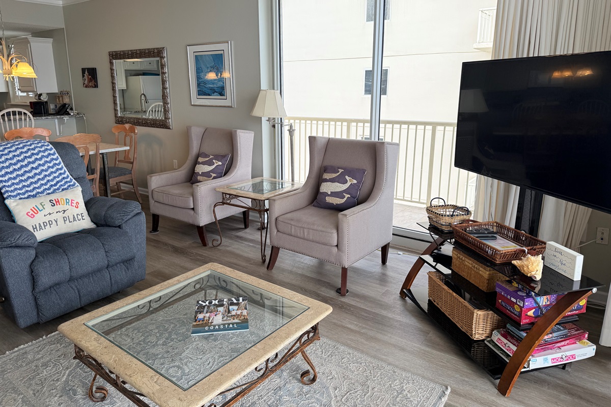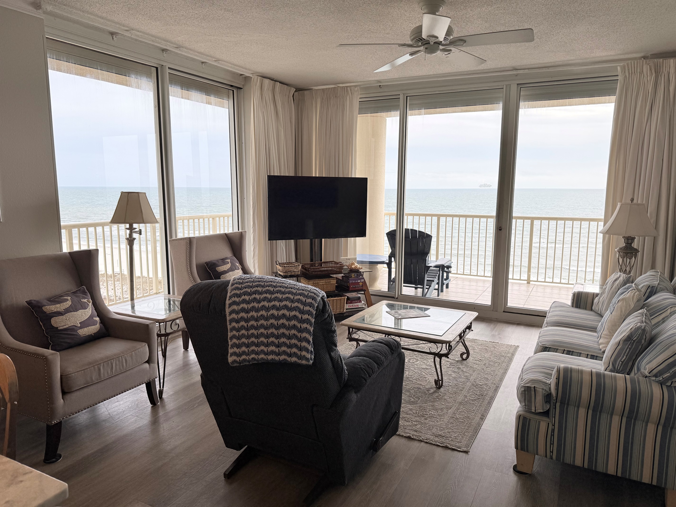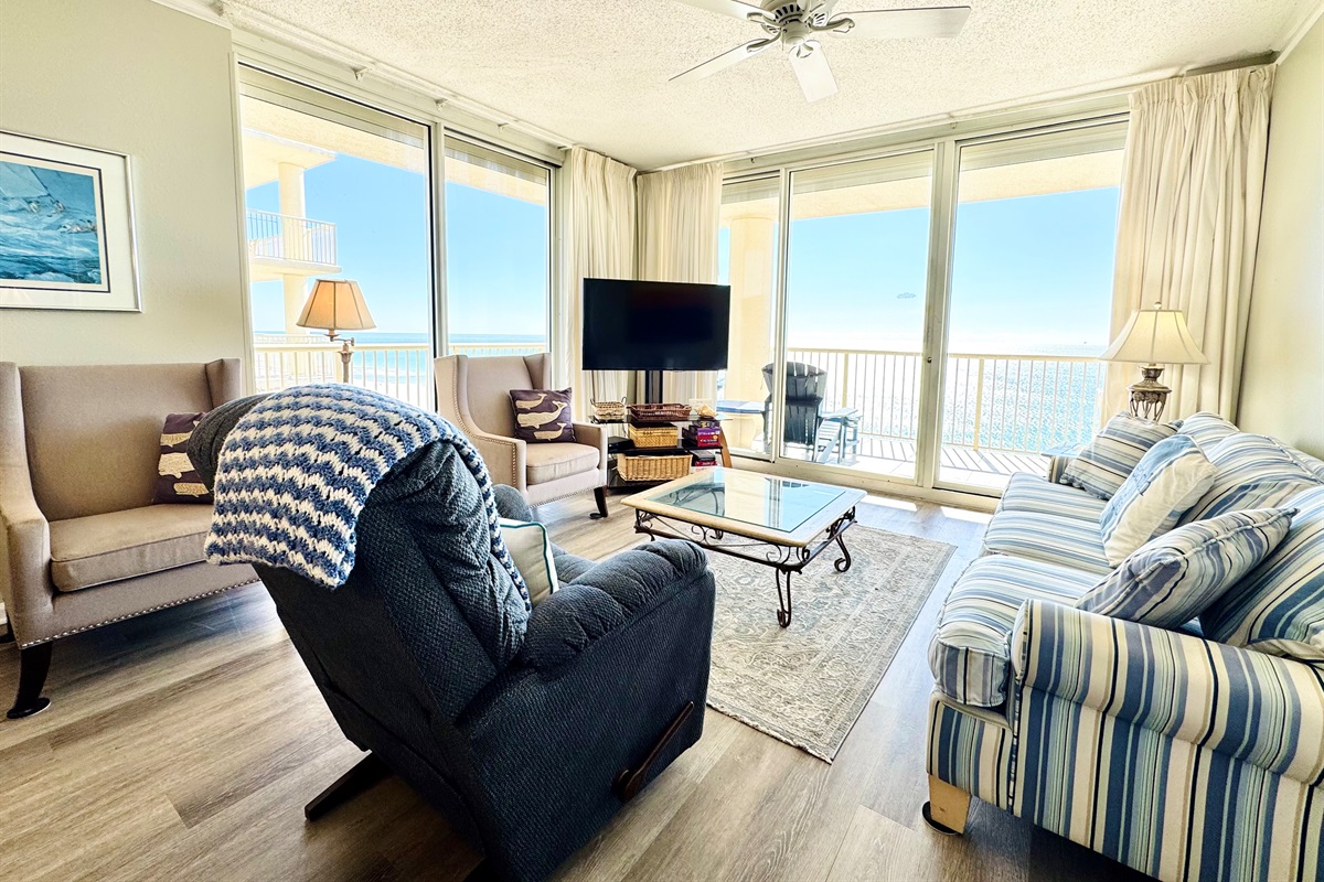 Our condo has a great view of the Gulf of Mexico from the eleventh floor in the Doral Tower at The Beach Club. It is a corner unit with total visibility of the beach and pools and is beautifully decorated. This condo has the Enhance CenturyLink TV Package! There are hundreds of channels! Package includes about 50 HD Channels, 7 HBO channels, lots of Sports channels & much more!! The SMART HDTV is 55" and has Netflix and Amazon Prime streaming abilities.